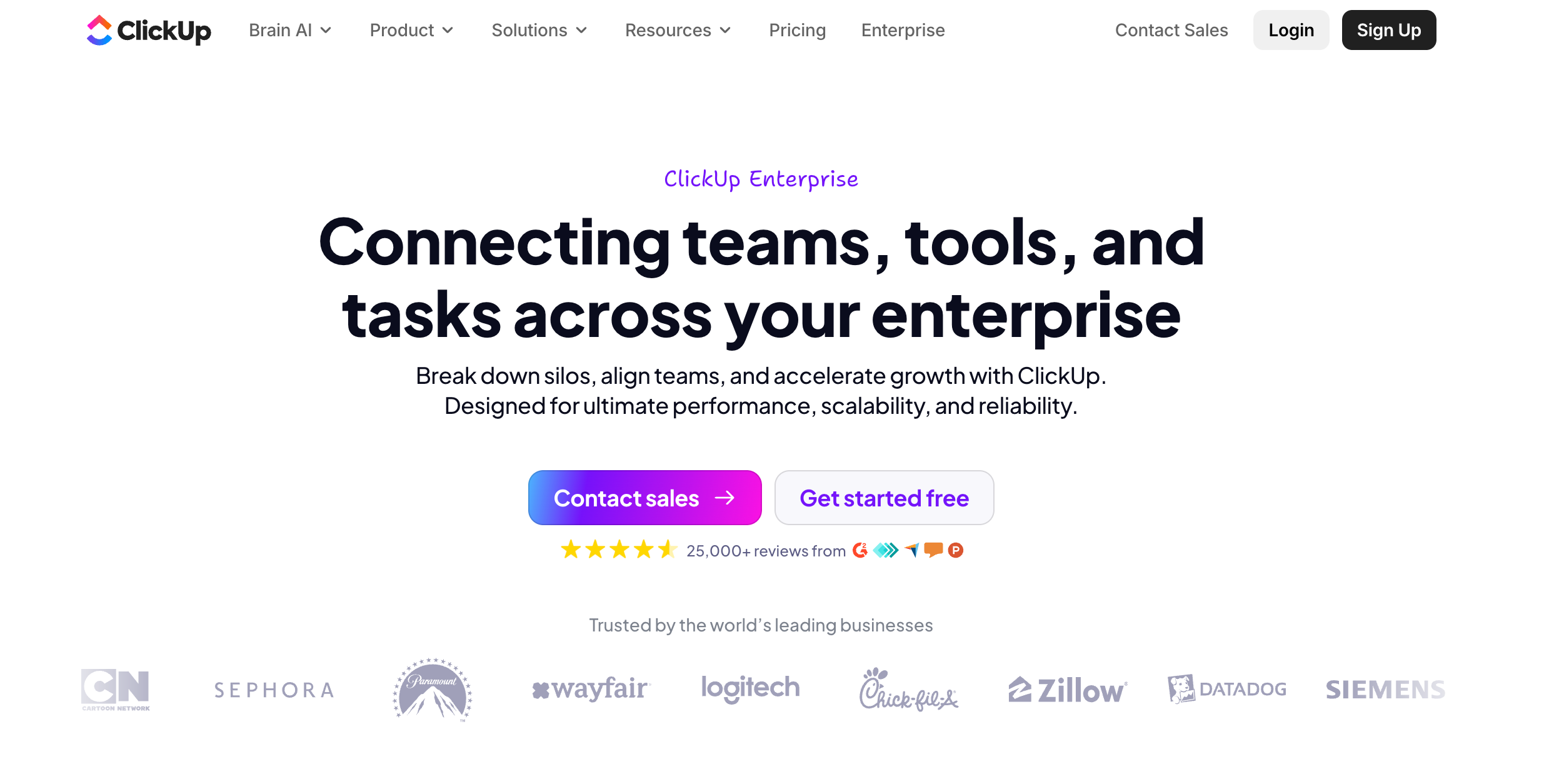 ClickUp’s biggest strength is its flexibility: it can scale from small teams managing simple task lists to enterprise organizations coordinating large cross-functional projects.